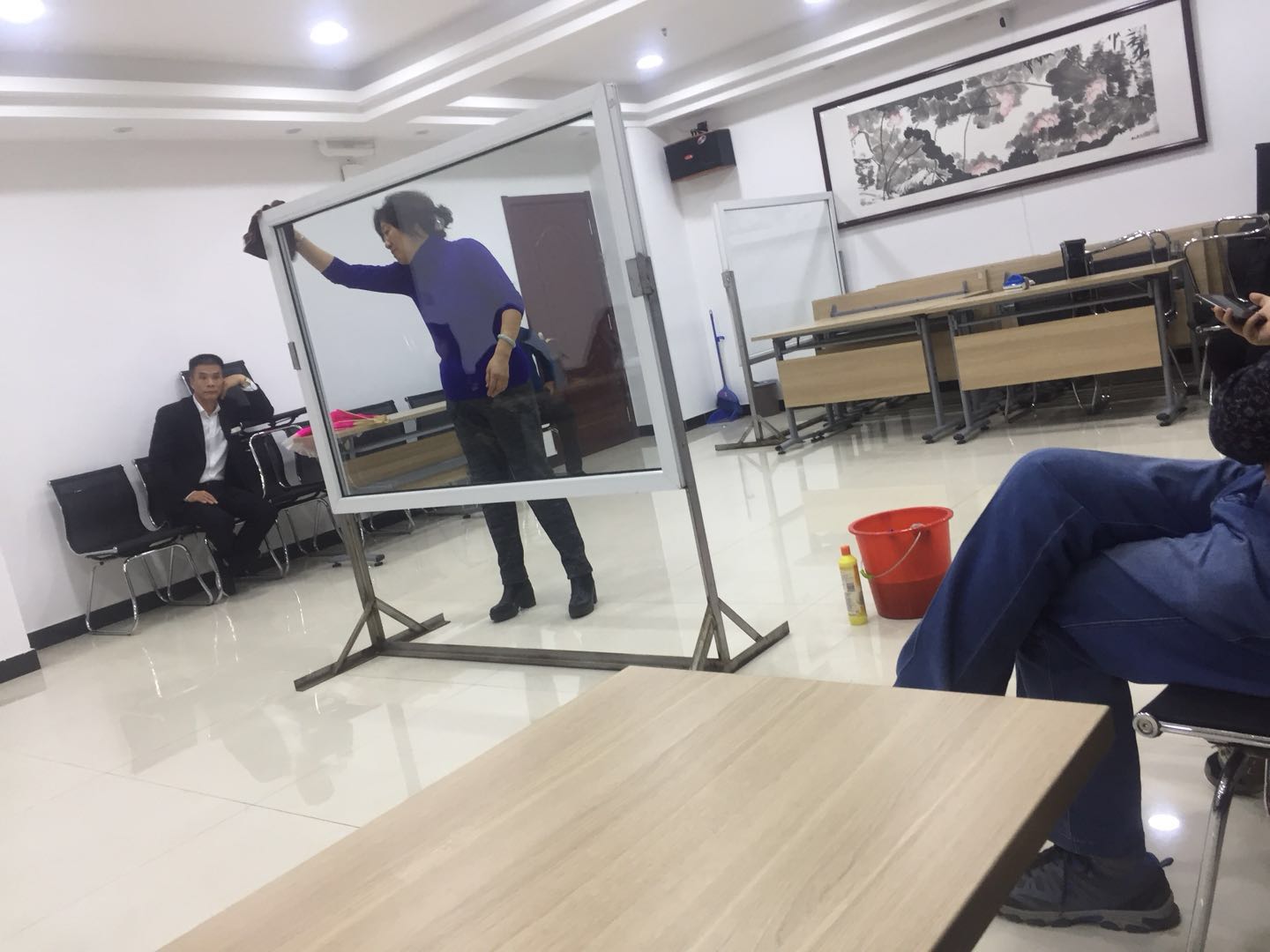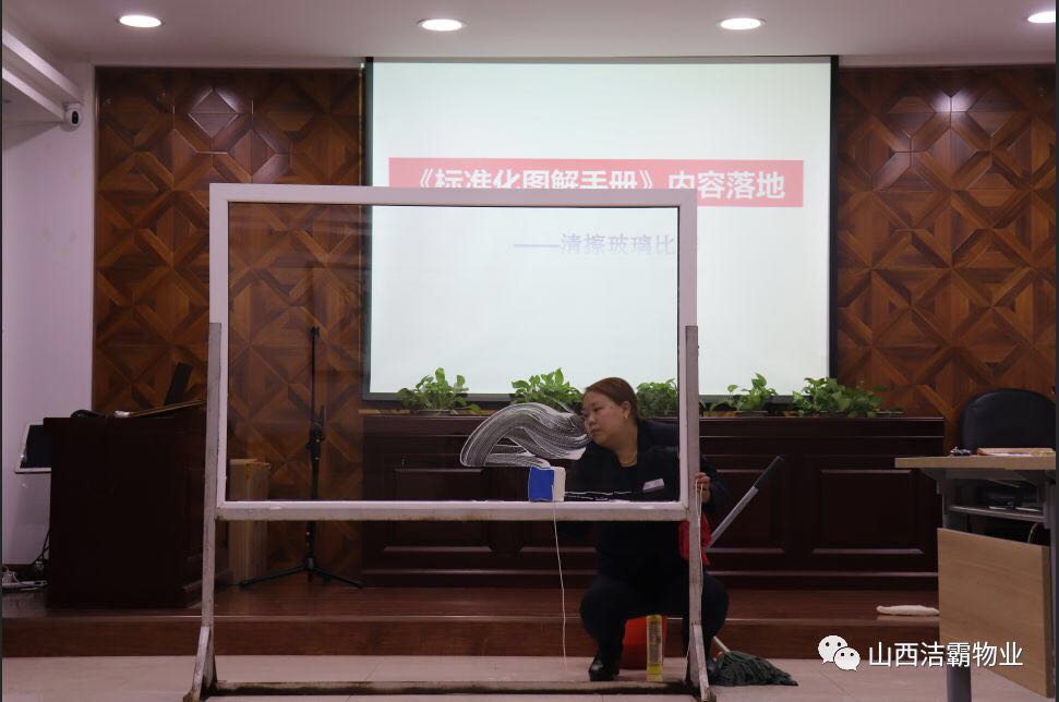 為提高公司管理人員基礎技能,潔霸公司利用周四內(nèi)部員工培訓的時間組織了一次系統(tǒng)的內(nèi)部管理人員檫玻璃培訓,隨后并進行了以組為單位的檫玻璃競賽。