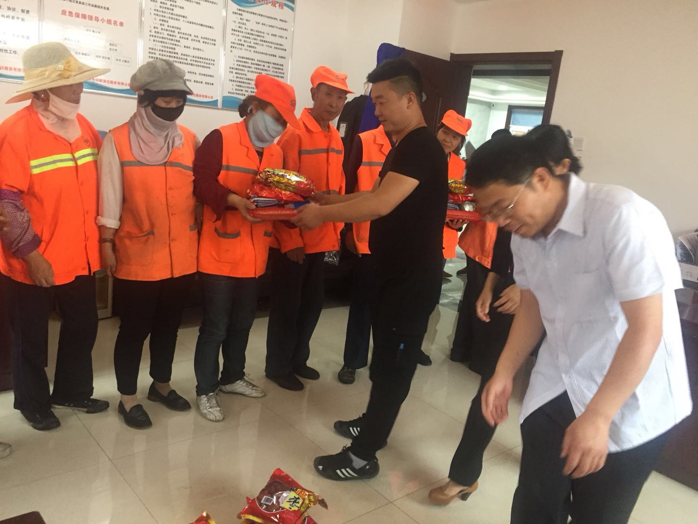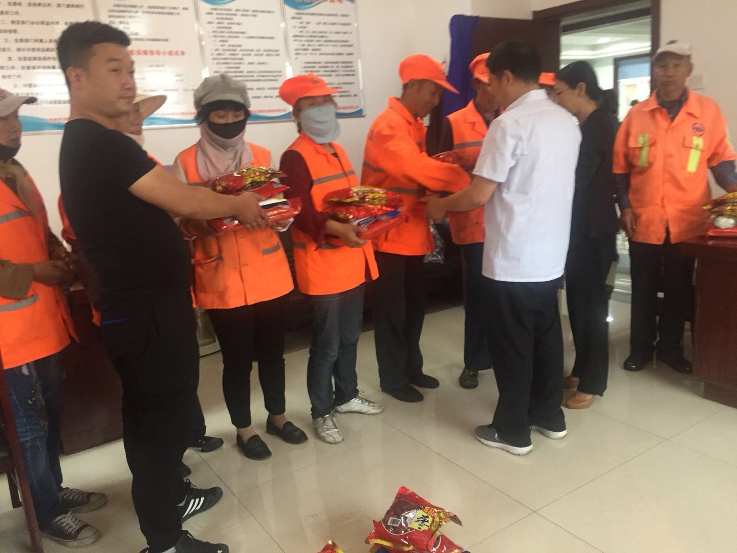 端午節(jié)來臨之際,為弘揚(yáng)傳統(tǒng)文化,我公司按照傳統(tǒng)習(xí)俗為環(huán)衛(wèi)工準(zhǔn)備了節(jié)日禮品。濃濃棕香,綿綿情長。6月5日下午,在一年一度的端午佳節(jié)來臨之際,一袋袋香香的糯米、大大的紅棗、白糖、冰糖飽含著公司關(guān)愛和祝福的端陽節(jié)福利由公司領(lǐng)導(dǎo)親自發(fā)放到為美化城區(qū)大街小巷作出默默奉獻(xiàn)的公司環(huán)衛(wèi)工人手中。