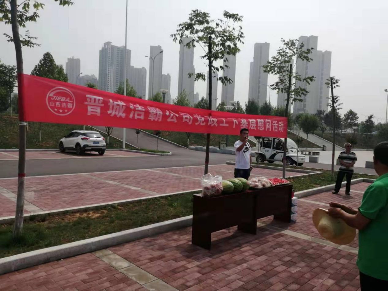 暑期盛夏,赤日炎炎7月19日上午,晉城潔霸公司黨政工暑期“情系一線”下基層慰問(wèn)系列活動(dòng)啟動(dòng)。在工會(huì)主席崔偉同志率領(lǐng)下,慰問(wèn)活動(dòng)小組首站來(lái)到了晉城市帶狀公園,看望了辛勤奮戰(zhàn)在園林一線的員工,給員工送去了面包、西瓜、白糖等慰問(wèn)品,表達(dá)了公司領(lǐng)導(dǎo)的親切關(guān)懷。