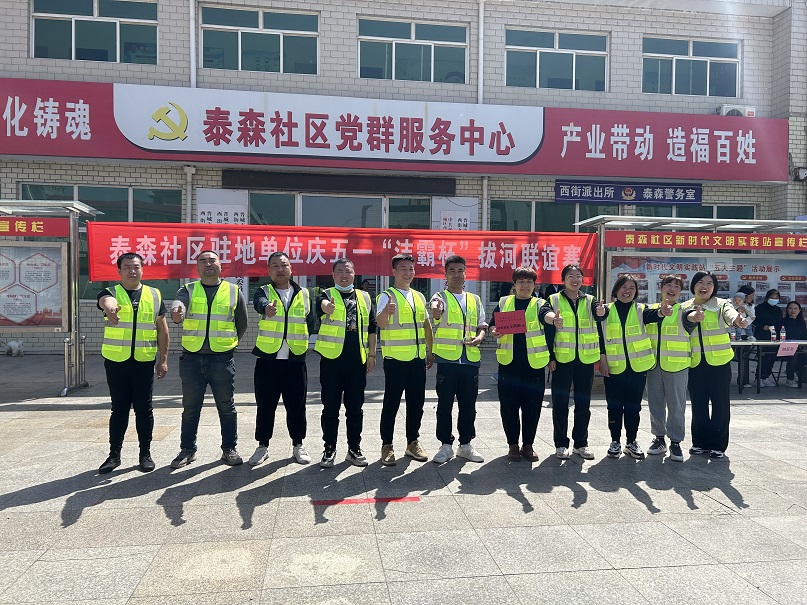 為了慶!拔逡弧眹H勞動節(jié),營造良好的節(jié)日氛圍,4月27日上午,泰森社區(qū)駐地單位慶五一“潔霸杯”拔河聯(lián)誼賽在泰森廣場舉行。