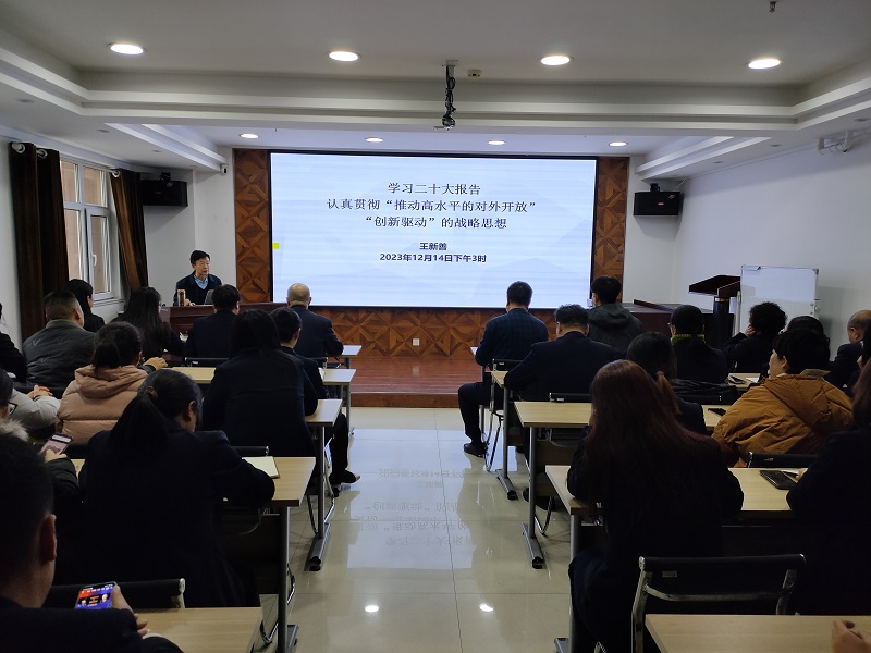 12月14日下午,公司舉辦“對(duì)外開(kāi)放”“創(chuàng)新驅(qū)動(dòng)”專題講座,邀請(qǐng)市商務(wù)局原局長(zhǎng)王新善圍繞二十大報(bào)告的重點(diǎn)內(nèi)容“推動(dòng)高水平對(duì)外開(kāi)放”“創(chuàng)新驅(qū)動(dòng)”等進(jìn)行宣講。
