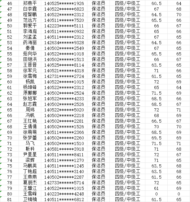 晉城市潔霸清潔服務股份有限公司職業(yè)技能等級認定中心現(xiàn)將2024年1月27日下午認定人員成績公示如下:
