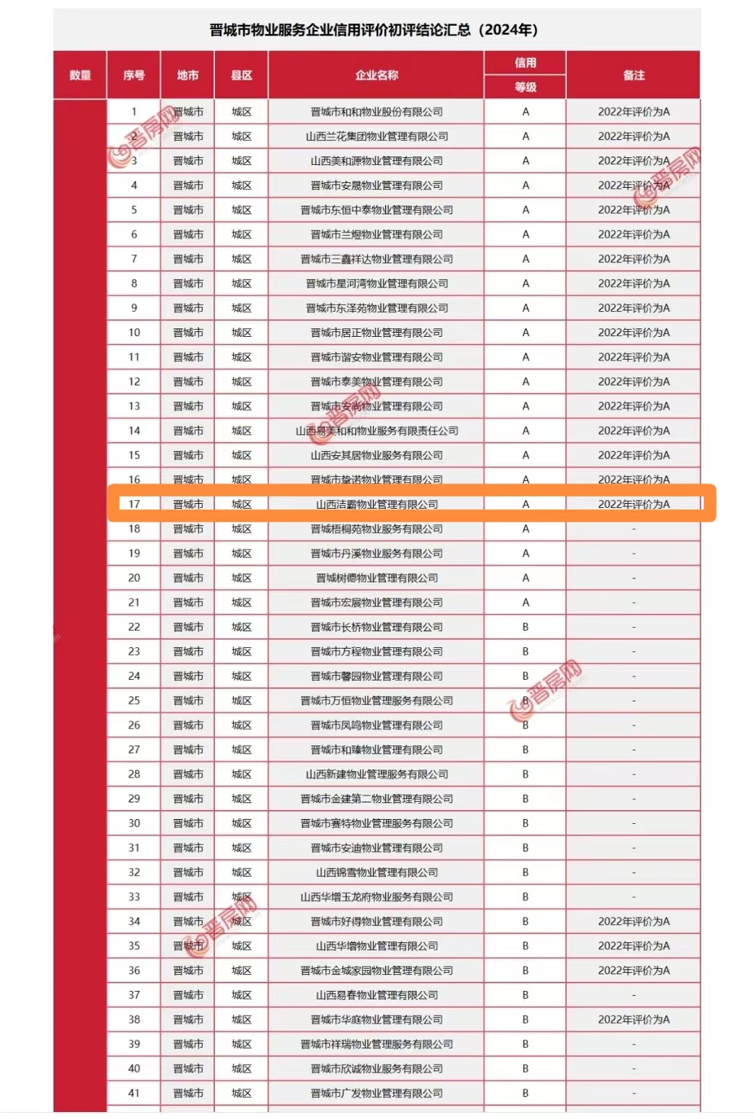 日前,山西省住房和城鄉(xiāng)建設(shè)廳發(fā)布了2023年度房地產(chǎn)企業(yè)信用評價(jià)結(jié)果的通知,根據(jù)通知顯示,晉城市共有200家物業(yè)服務(wù)公司參加評定,晉城市潔霸物業(yè)管理有限公司獲得2023年度物業(yè)服務(wù)企業(yè)信用等級A級認(rèn)證。在本次考評結(jié)果中,潔霸物業(yè)光榮上榜,是對其物業(yè)服務(wù)品質(zhì)的充分肯定。 |