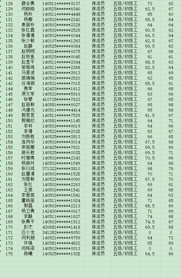 晉城市潔霸清潔服務股份有限公司職業(yè)技能等級認定中心現(xiàn)將2024年6月2日認定人員成績公示如下:
