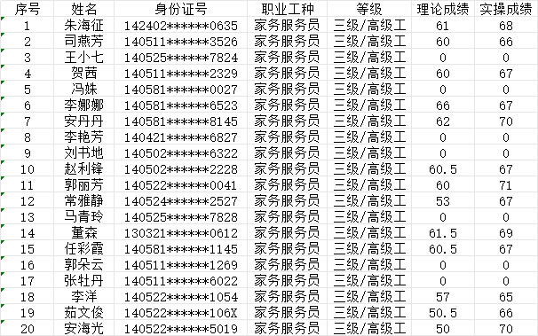 2024年7月14日第6批家政服務(wù)員高級(jí)認(rèn)定人員成績(jī)公示