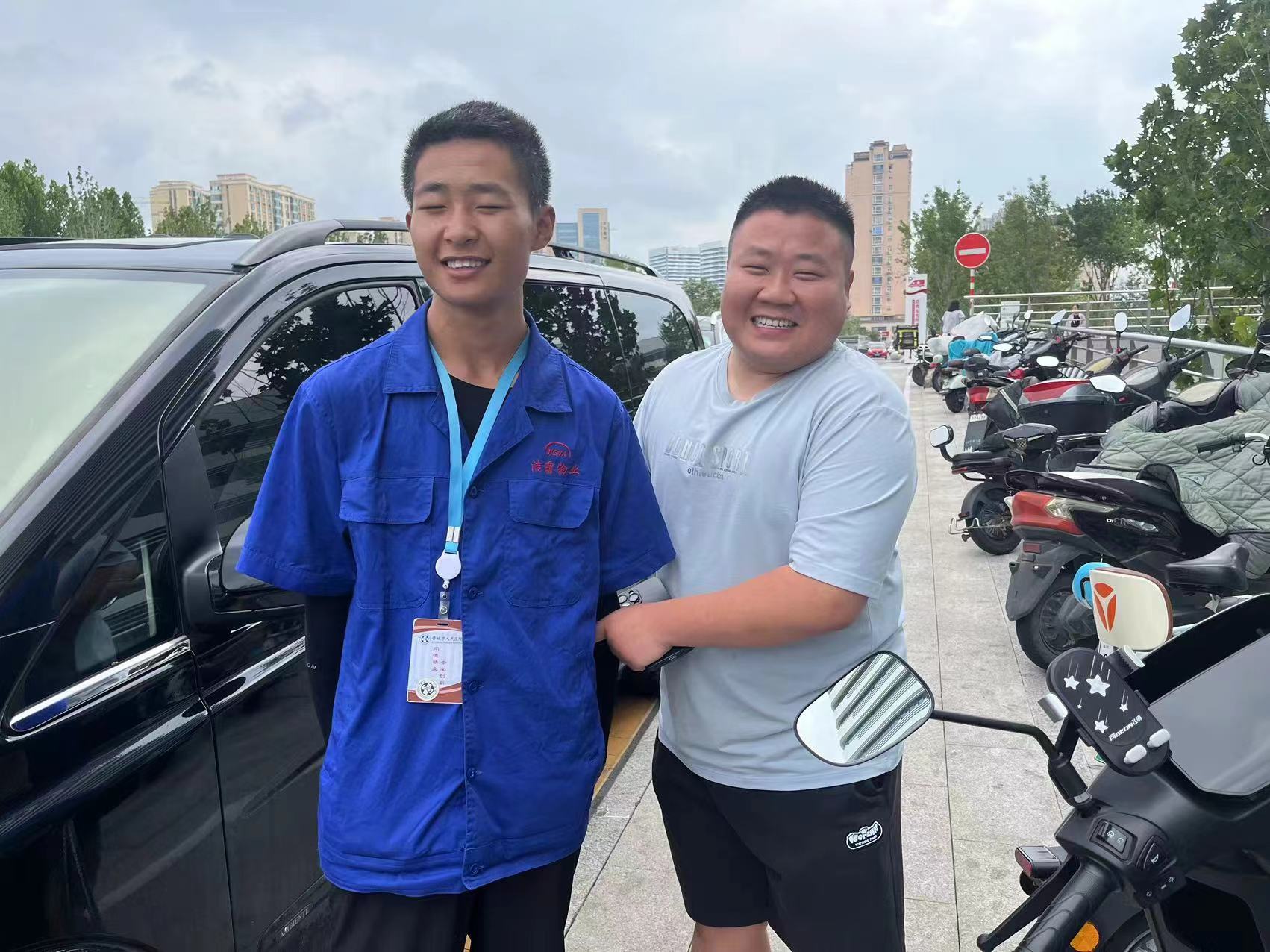 7月30日上午9點左右,潔霸物業(yè)市醫(yī)院項目部的保潔員張科明在打掃醫(yī)院外圍區(qū)域時,發(fā)現(xiàn)一部蘋果14手機遺落在一輛電動車上。四下打量,并沒有看到有人來尋,心想,手機是我們?nèi)粘I钪斜夭豢缮俚奈锲,不少人會把資料文件存放在手機中,如果丟了就麻煩了。于是馬上將此情況上報給項目部經(jīng)理馬麗娜。馬麗娜經(jīng)理收到消息后,積極聯(lián)系尋找失主,并和張科明在原地等候失主。