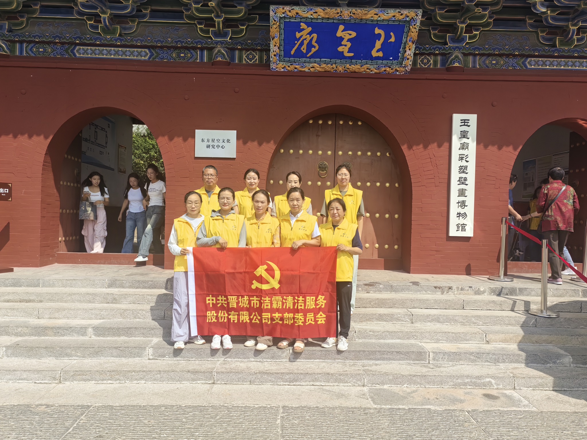按照玉皇廟工作人員的安排,公司支部黨員和入黨積極分子化身為秩序維護(hù)員,在廟內(nèi)的不同區(qū)域配合安保人員開展文物保護(hù)、安全維護(hù)等工作。引導(dǎo)游客游覽路線;提醒游客看管好隨身物品;提醒游客在拍攝文物時(shí)不得使用閃光燈輔助光源,關(guān)閉相機(jī)對焦輔助燈;為游客看護(hù)寵物等等,積極為游客營造安全、有序的旅游環(huán)境。利用中午吃飯休息的時(shí)間,大家參觀了玉皇殿、成湯殿、二十八宿殿等,觀看了噓幻生真古代彩塑藝術(shù)展,了解了不同時(shí)期的代表性彩繪泥塑和制作過程,更加堅(jiān)定了文化自信。