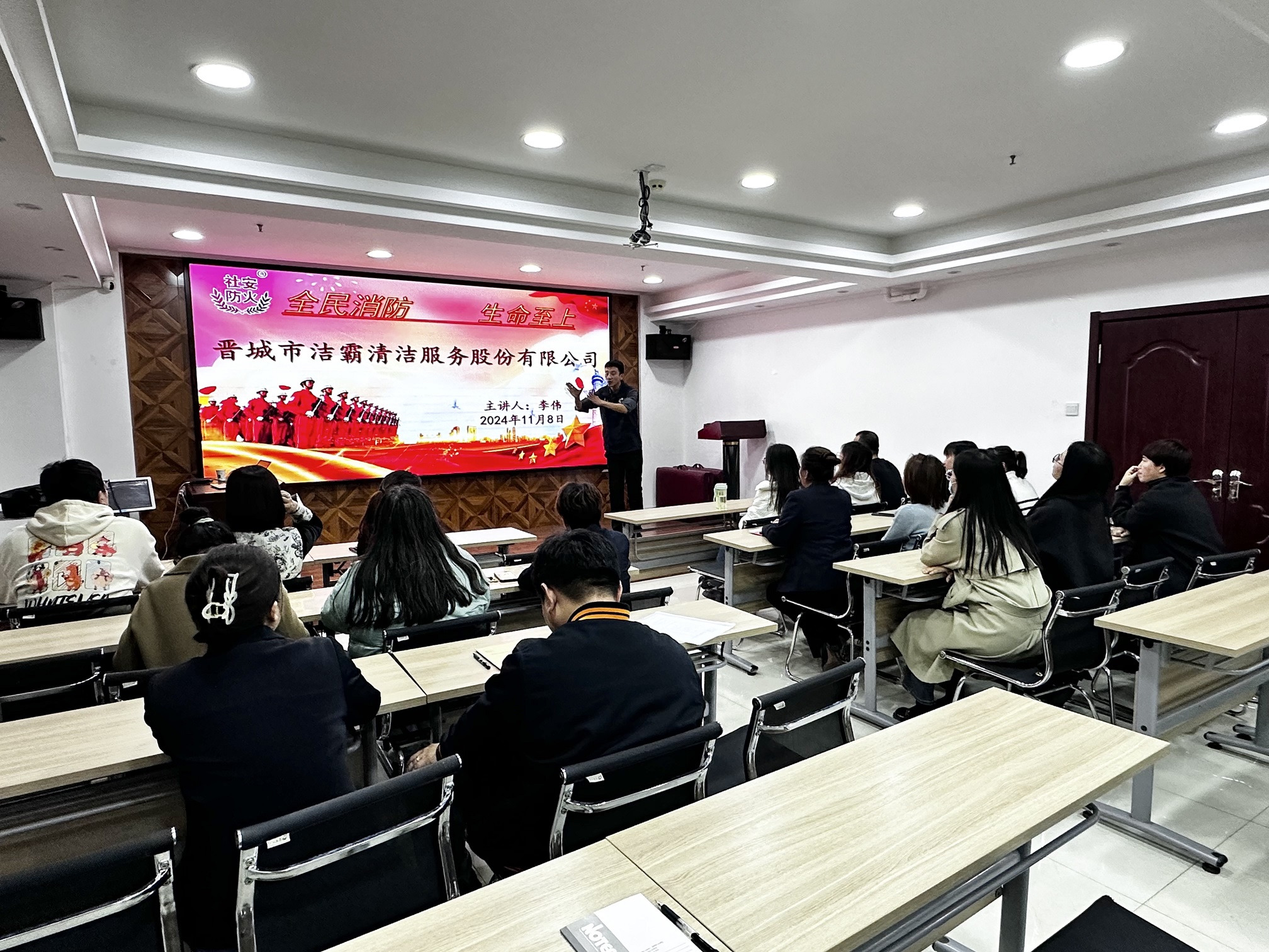 今年11月9日是第33個“全國消防安全宣傳教育日”。8日晚,公司舉辦“119”消防宣傳月主題培訓(xùn),邀請社安防火的李偉老師進(jìn)行授課。公司近30名管理人員參加培訓(xùn)。