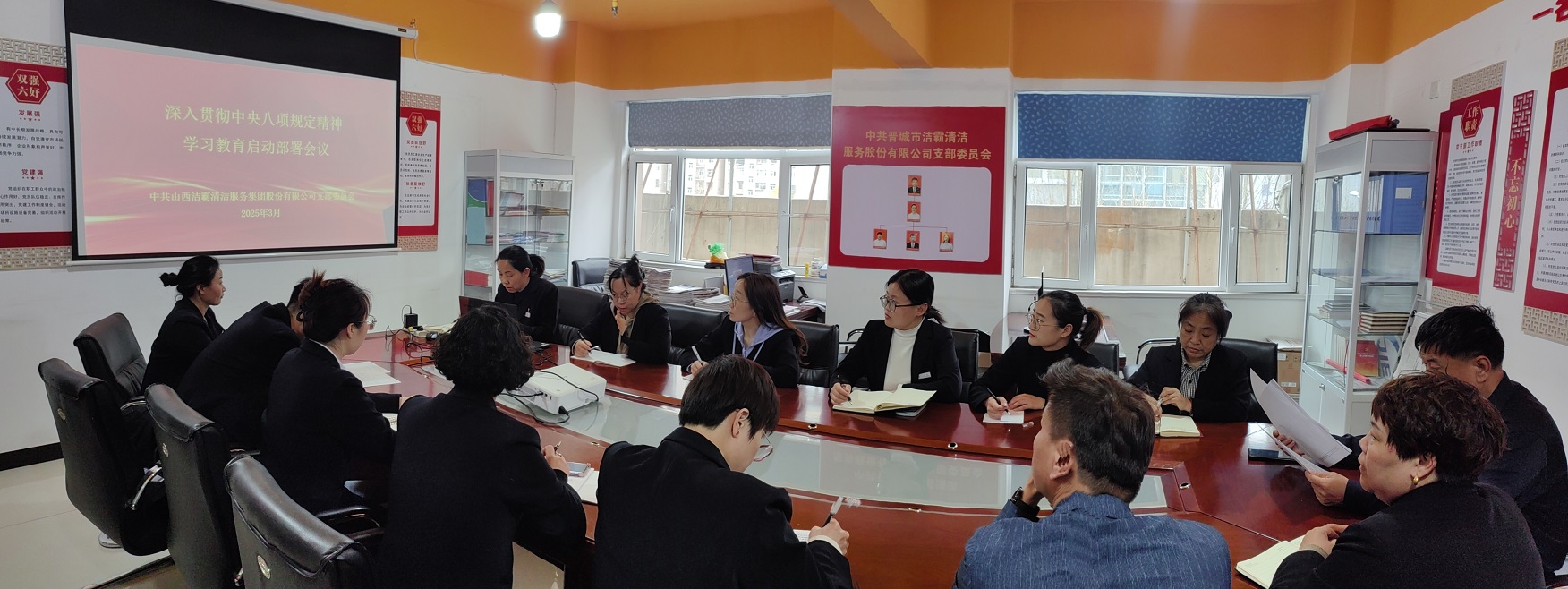 近日,山西潔霸清潔服務(wù)集團(tuán)股份有限公司黨支部召開專題會(huì)議,對(duì)公司開展深入貫徹中央八項(xiàng)規(guī)定精神學(xué)習(xí)教育進(jìn)行部署。支部書記程晉軍主持會(huì)議并講話。